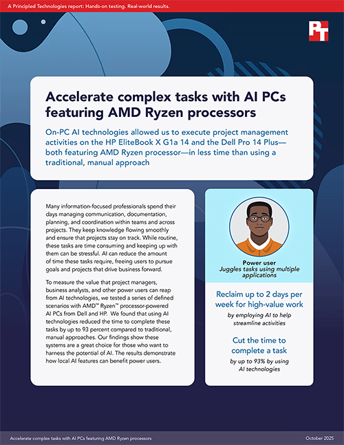The two reports from Principled Technologies (PT) show how much time users can save on everyday tasks by leveraging artificial intelligence (AI) technologies.